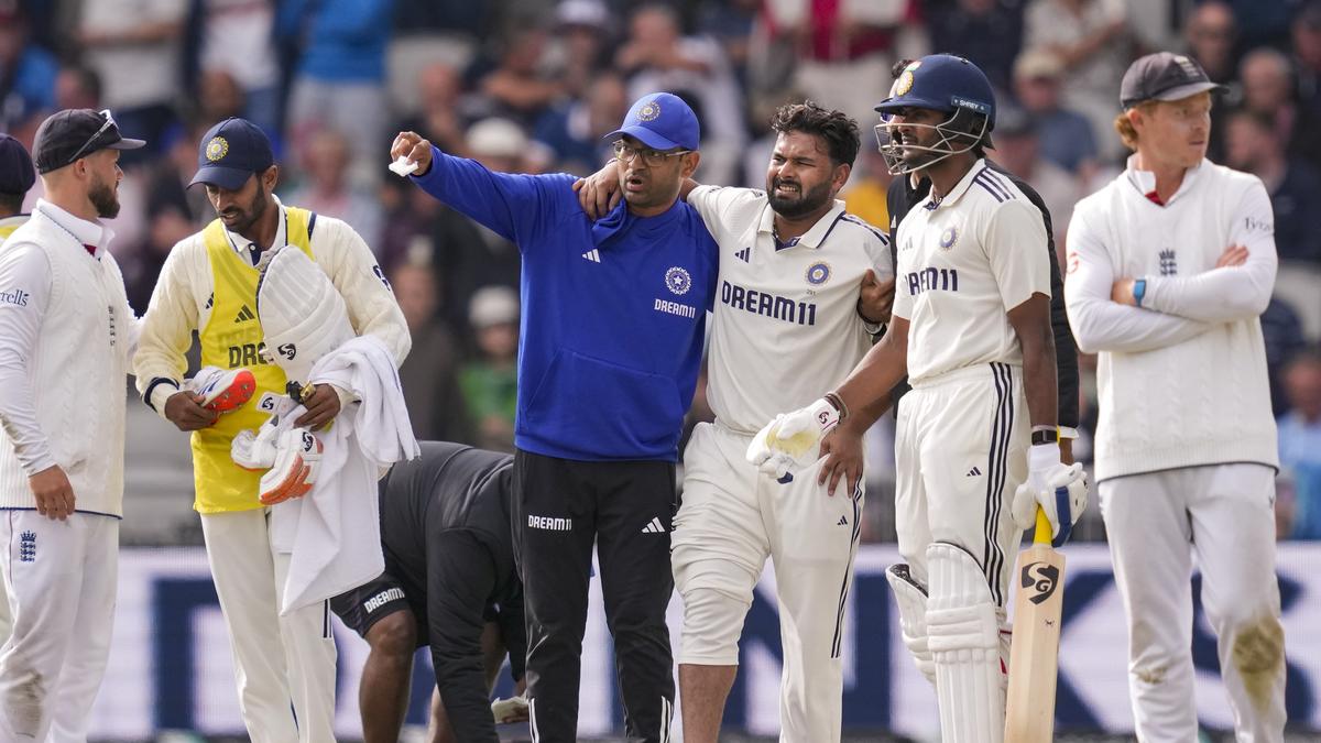 India’s wicketkeeper-batter was taken off the field on a stretched during the opening day of the fourth Test against England in Manchester.