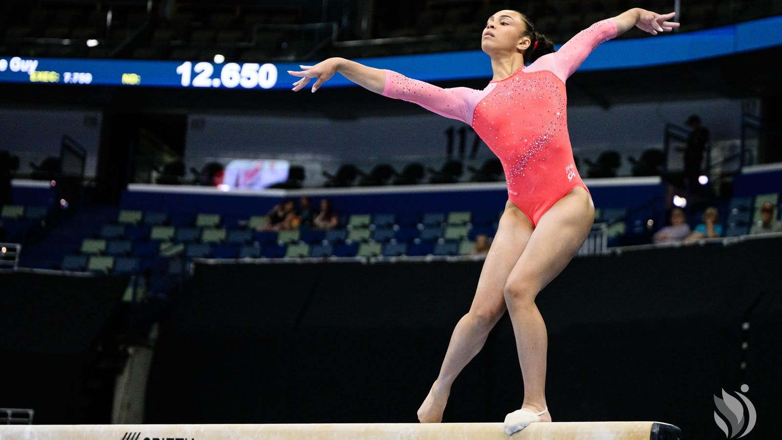 Hezly Rivera (WOGA) competes on the balance beam at the 2025 Xfinity U.S. Gymnastics Championships in New Orleans, Louisiana.