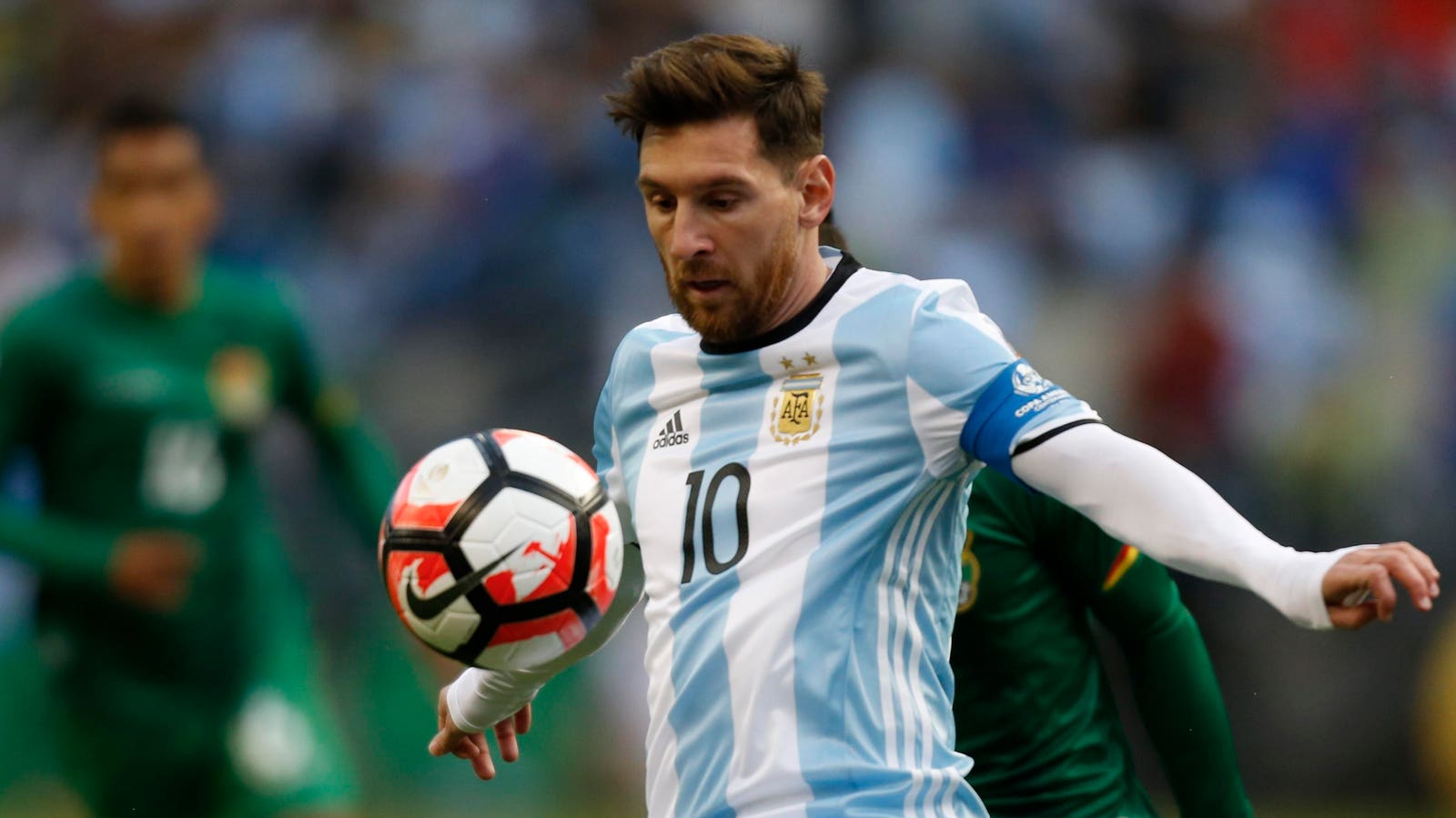 SEATTLE, WASHINGTON – JUNE 14: Lionel Messi of Argentina tries to control the ball during a group D match between Argentina and Bolivia at Century Link Field as part of Copa America Centenario US 2016 on June 14, 2016 in Seattle, Washington, US. (Photo by John Froschauer/LatinContent via Getty Images)