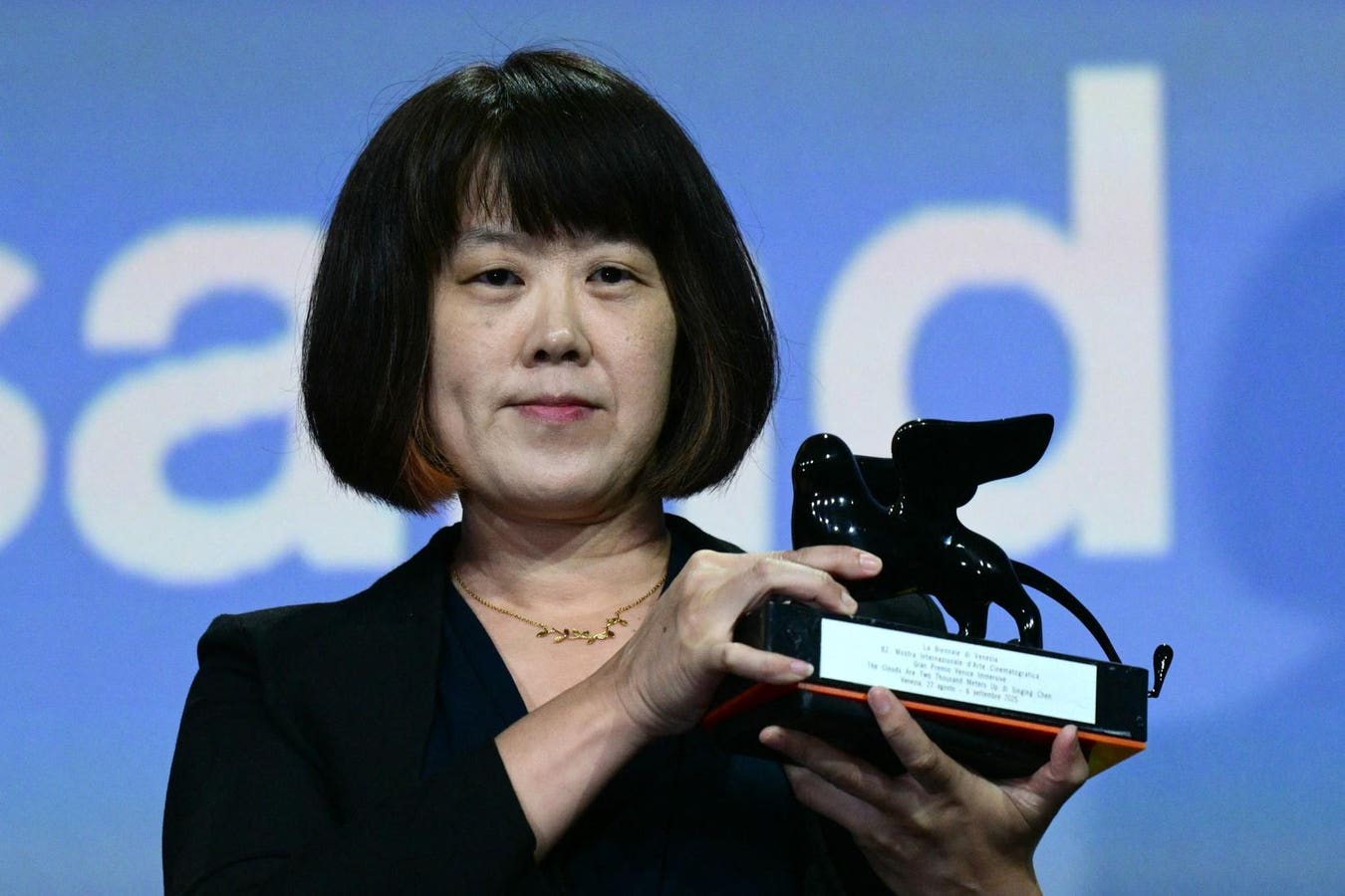 Singing Chen acknowledges receiving the Venice Immersive Best Experience Award for ‘The clouds are two thousand meters up” during the award ceremony of the 82nd Venice Film Festival on September 6, 2025 at Venice Lido. (Photo by Tiziana FABI / AFP) (Photo by TIZIANA FABI/AFP via Getty Images)