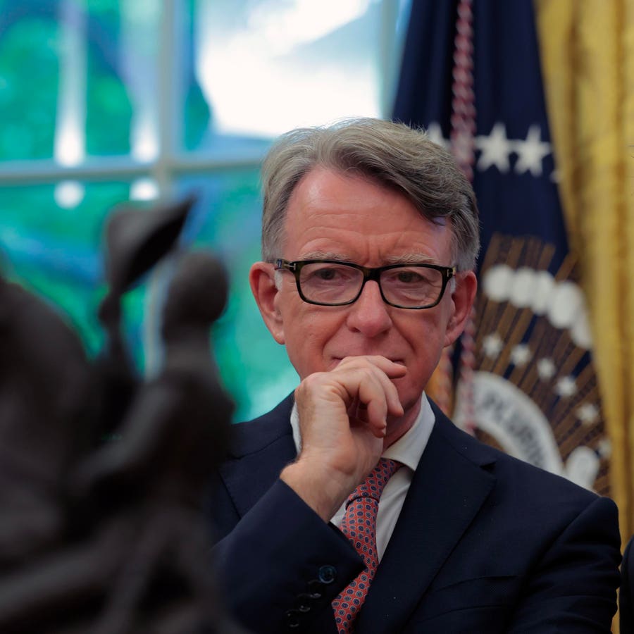 WASHINGTON, DC – MAY 08: Peter Mandelson, former British Ambassador to the United States during a meeting with President Donald Trump in the Oval Office at the White House on May 2025 in Washington, DC.