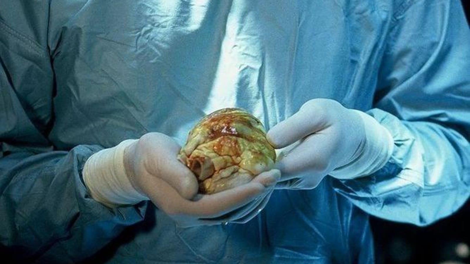 Dr. Bill Frist, then-head of the Vanderbilt Multi-Organ Transplant Center, holding a diseased heart removed from a patient who would receive a healthy transplanted heart organ.
