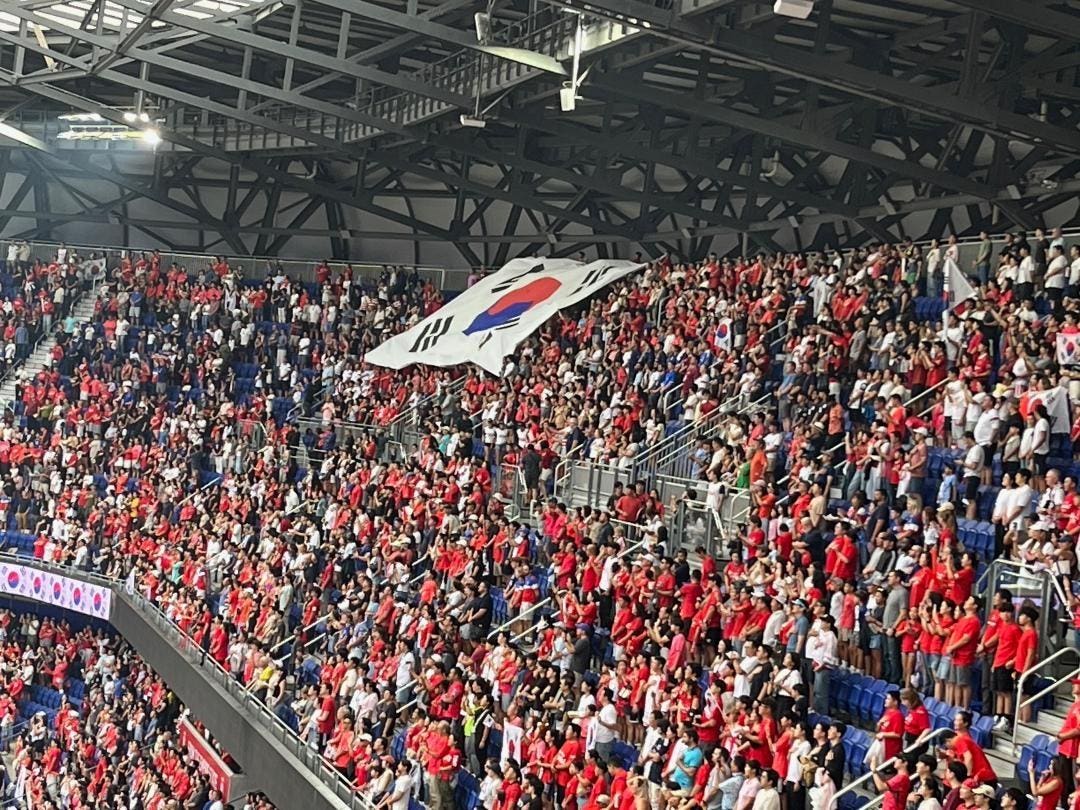 At least two-thirds of the fans at Sports Illustrated Stadium for the USMNT-Korea Republic game were clad in red of the visiting team on Sept. 6. (Photo by Michael Lewis)