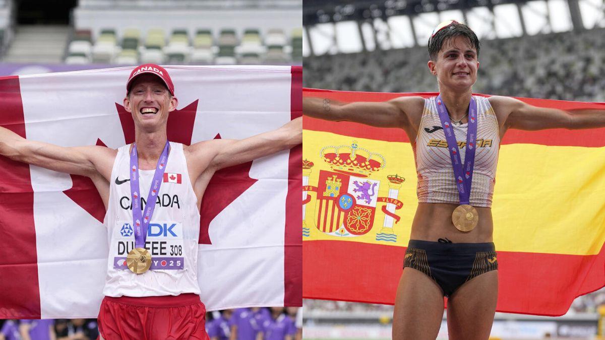 Evan Dunfee of Canada and Spanish defending champion Maria Perez prevailed in suffocating Tokyo humidity to win the first gold medals of the 20th World Athletics Championships in the 35-km walks on Saturday.