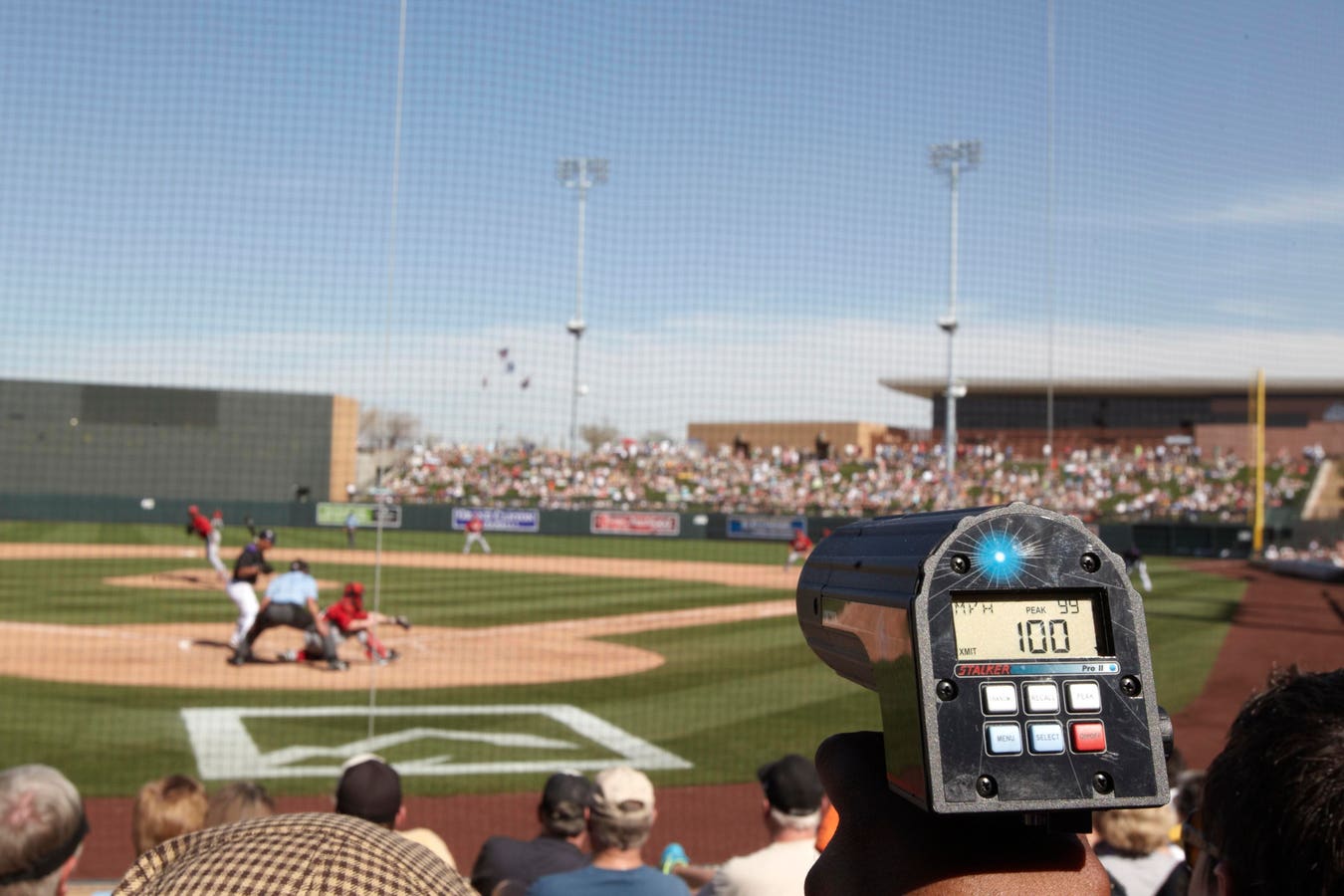 Under new MLB rules, scouts and team employees will have to put down their radar guns and stop watches for a few months each off-season. (Photo by Brad Mangin /Sports Illustrated via Getty Images)(Set Number: X85609 TK1 R2 F227 )