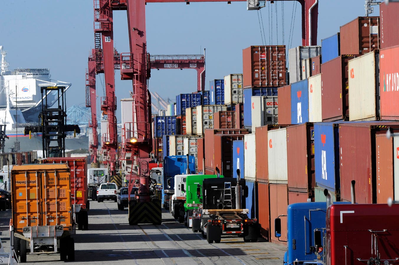 LONG BEACH, CALIFORNIA -Semi truck drivers arrive to pickup and deliver products at the Port of Long Beach