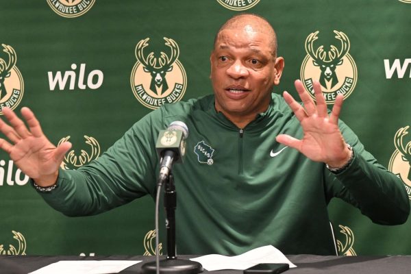 ATLANTA, GEORGIA – MARCH 04: Head Coach Doc Rivers of the Milwaukee Bucks speaks during a press conference after the game against the Atlanta Hawks at State Farm Arena on March 04, 2025 in Atlanta, Georgia. NOTE TO USER: User expressly acknowledges and agrees that, by downloading and or using this photograph, User is consenting…