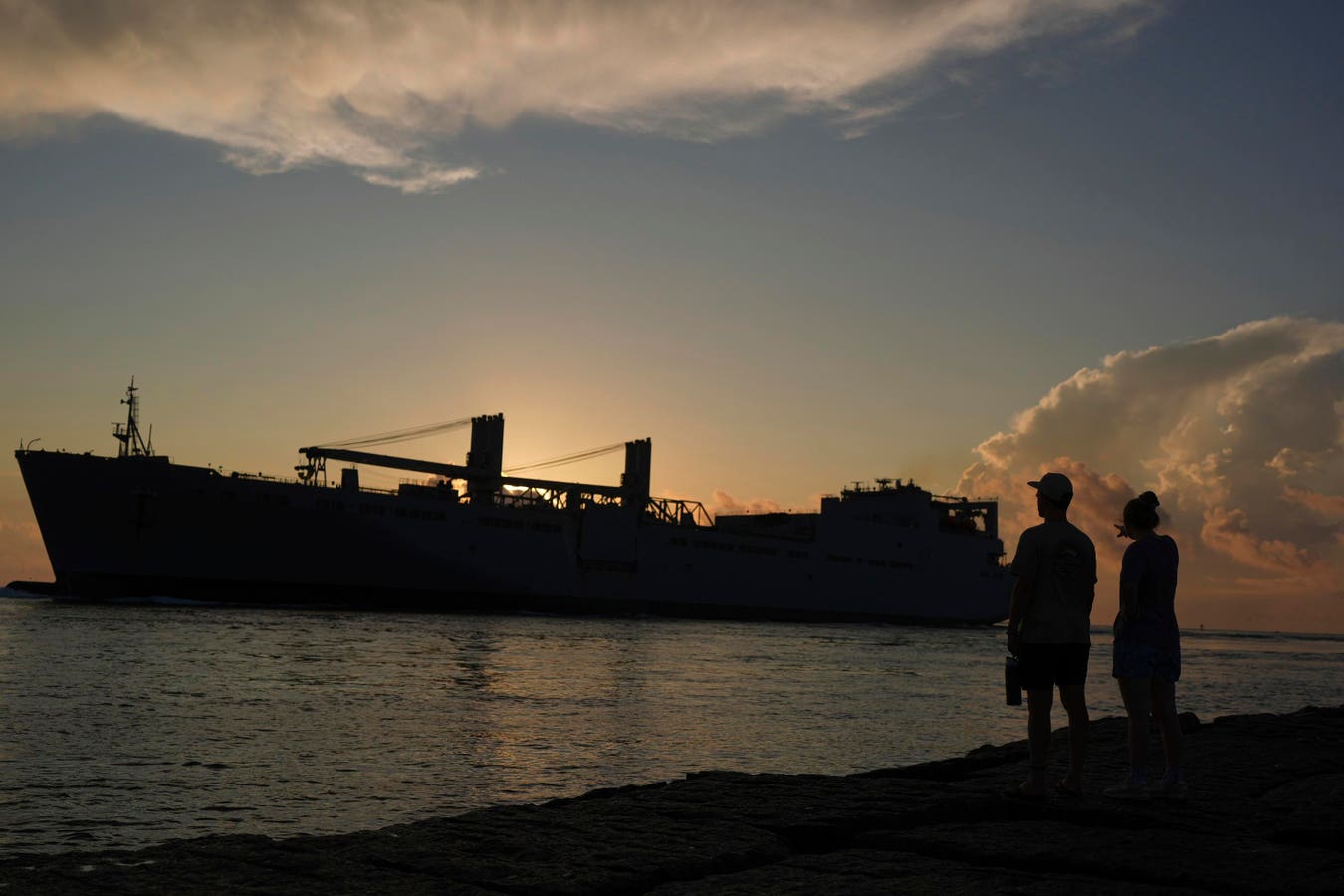 An oil tanker arrives in Port Aransas, Sunday, Aug. 10, 2025. (AP Photo/Eric Gay)