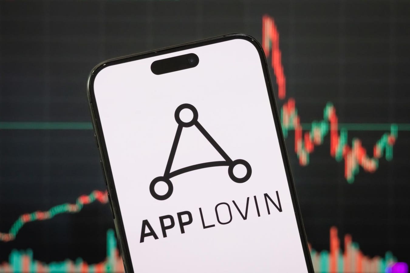 CHONGQING, CHINA – MAY 04: In this photo illustration, the logo of AppLovin Corporation is displayed on a smartphone screen, with a stock market chart in the background suggesting recent trading activity, on May 04, 2025. AppLovin is a United States-based technology company that provides software and services for mobile application developers, including marketing, monetization, and analytics platforms. (Photo illustration by Cheng Xin/Getty Images)