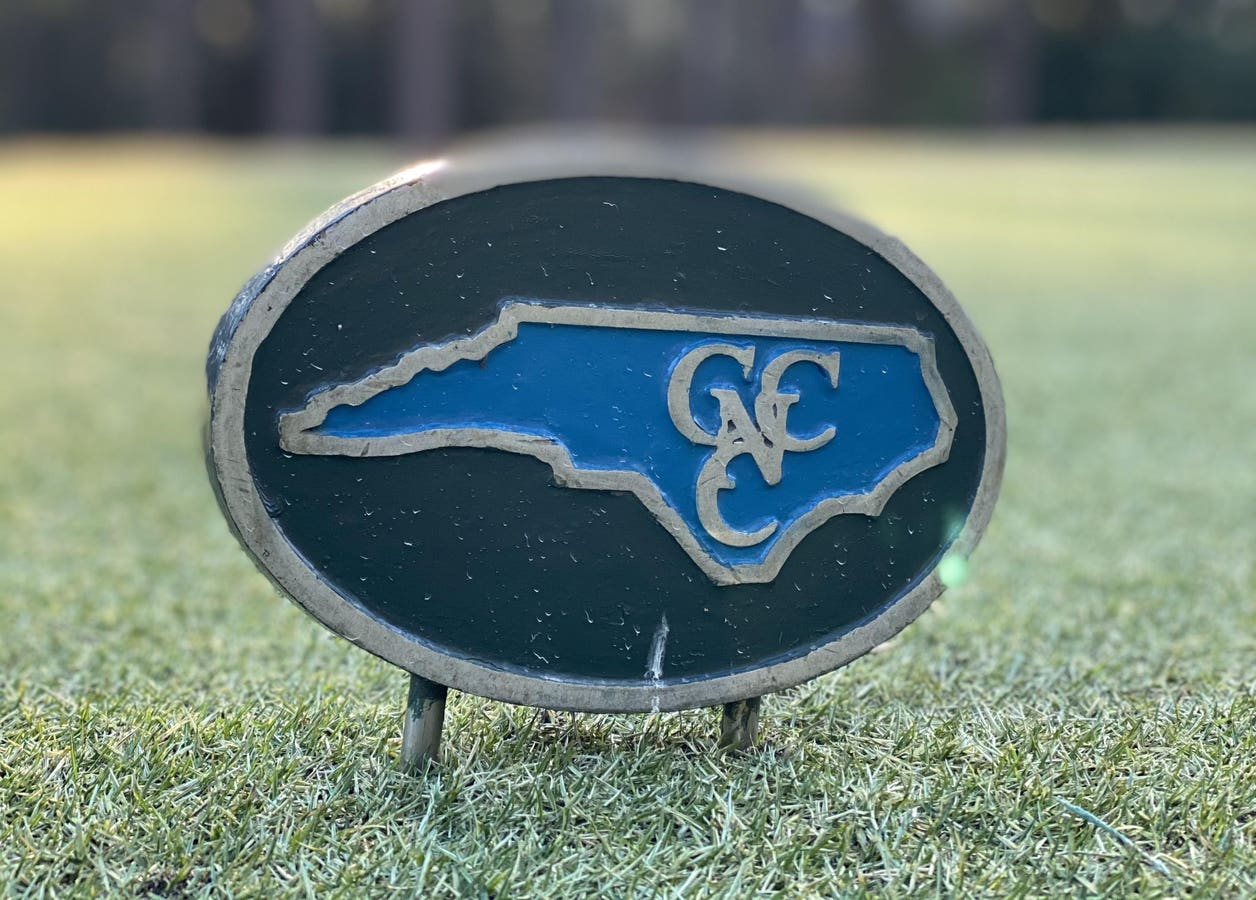 A tee marker at The Country Club of North Carolina, the only club in the U.S. with a reciprocal relationship with Royal Dornoch in Scotland.