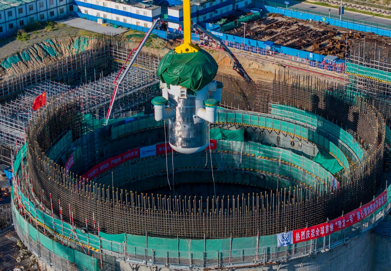 The core module being lowered at China’s Linglong One, the world’s first commercial SMR, installed in 2023 in Changjiang, China.