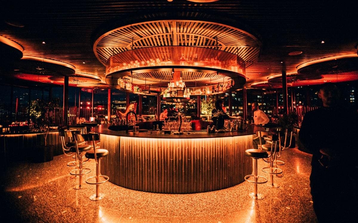 The bar at Mamba Negra, occupying the 22nd floor of a tower in Medellín’s upscale neighborhood El Poblado.