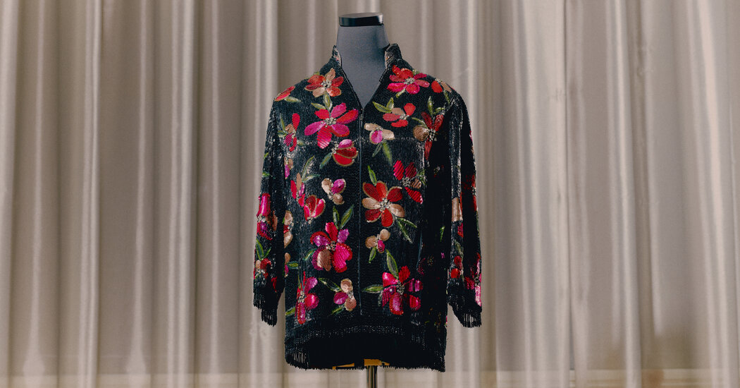 Nicole Bloomfield, a textile conservator, has given it a thorough examination and proposed a course of treatment. With the exception of “scattered areas of loss” — Ms. Bloomfield’s rather poetic description of missing rhinestones, sequins and beads — the jacket is in good condition.
