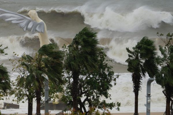 Topline Typhoon Ragasa, the most powerful storm of the year so far, made landfall in southern China on Wednesday evening after causing a wave of destruction and killing more than a dozen people in Taiwan and remote parts of the Philippines. Waves crash onto a beach near a giant sculpture in Shenzhen in southern China’s…