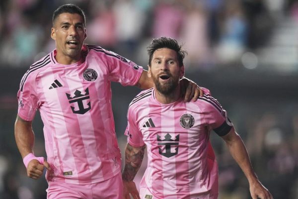 Inter Miami forward Lionel Messi, right, celebrates with Luis Suarez, left, after scoring a goal during the second half of an MLS soccer match against Nashville SC, Saturday, July 12, 2025, in Fort Lauderdale, Florida. | Photo Credit: AP Inter Miami forward Lionel Messi, right, celebrates with Luis Suarez, left, after scoring a goal during…