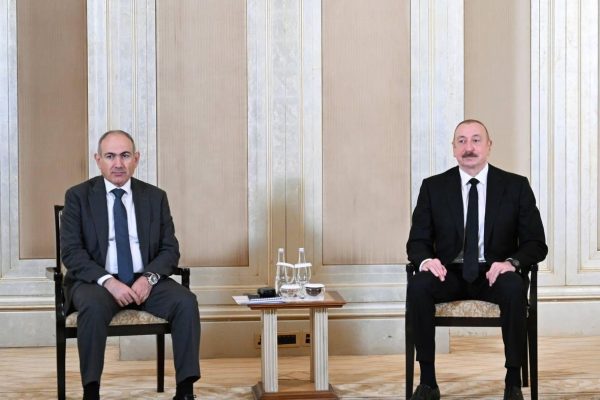 ABU DHABI, UAE – JULY 10: (——EDITORIAL USE ONLY – MANDATORY CREDIT – ‘AZERBAIJANI PRESIDENCY / HANDOUT’ – NO MARKETING NO ADVERTISING CAMPAIGNS – DISTRIBUTED AS A SERVICE TO CLIENTS——) Azerbaijani President Ilham Aliyev (R) and Armenian Prime Minister Nikol Pashinyan (L) meet in Abu Dhabi, the capital of the United Arab Emirates on July…