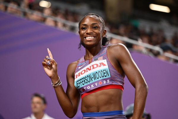 Melissa Jefferson-Wooden reacts after winning the women’s 100-meter event at the World Athletics Championships at the National Stadium in Tokyo on Sept. 14, 2025. (Photo by Andrzej Iwanczuk/NurPhoto via Getty Images) NurPhoto via Getty Images Newly crowned world champion Melissa Jefferson-Wooden left nothing up to chance as she stormed to a new championship record of…